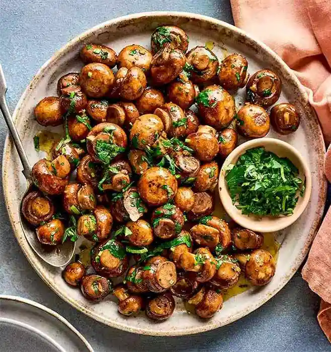 Mushrooms stirred with fresh garlic and hint o spice