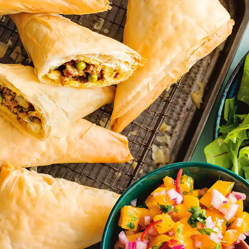 Crispy triangle stuffed with minced lamb
