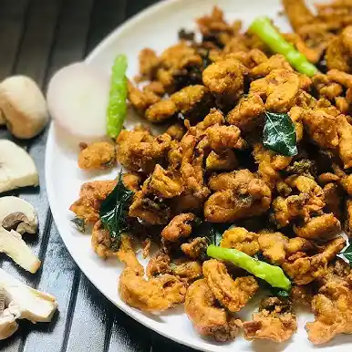 Mushrooms coated with lightly herbed butter mix and deep fried.