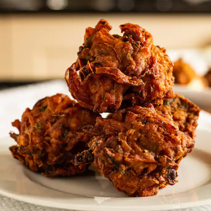 Specially chopped onions coated with gram flour, eggs, fried untill golden